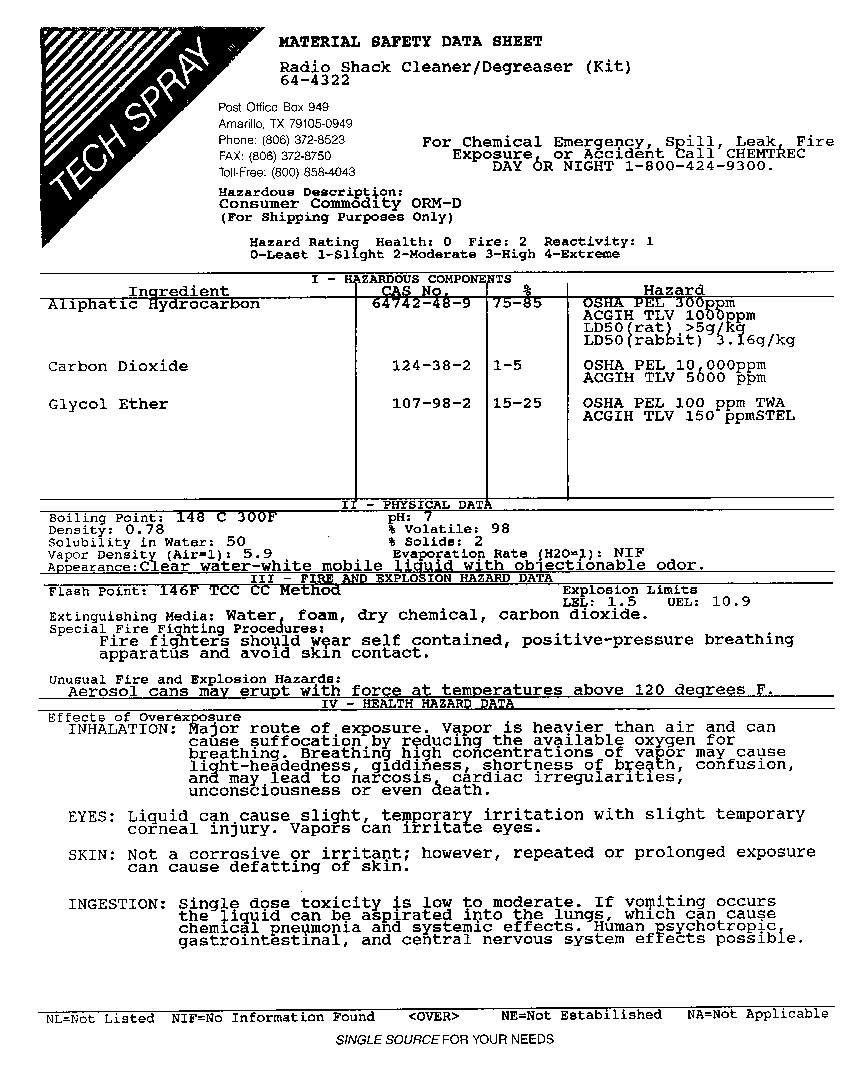 TECH SPRAY Radio Shack Cleaner/Degreaser (Kit)